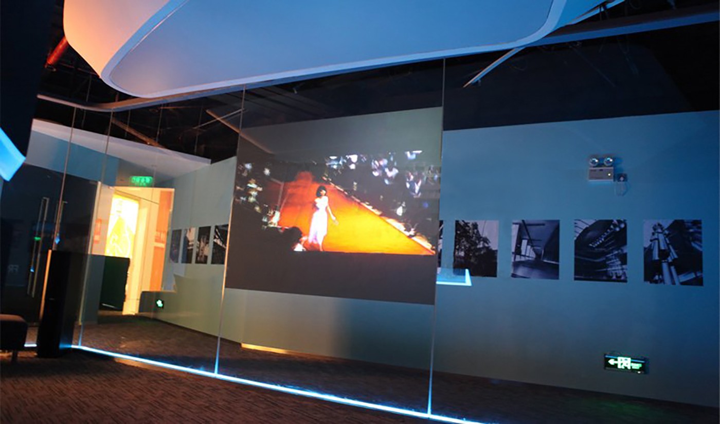 單面全息成像系統(tǒng)是由透明材料制成的四面錐體,參觀者的視線能從任何一面穿透它,通過表面鏡射和反射,參觀者能從錐形空間里看到自由飄浮的影像和圖形。四個(gè)視頻發(fā)射器將光信號(hào)發(fā)射到這個(gè)錐體中的特殊棱鏡上,匯集到一起后形成具有真實(shí)維度空間的立體影像;通過對產(chǎn)品實(shí)拍構(gòu)建三維模型的特殊處理,然后將拍攝的產(chǎn)品影像或產(chǎn)品三維模型影像疊加進(jìn)場景中,構(gòu)成了動(dòng)靜結(jié)合的產(chǎn)品展示系統(tǒng)。