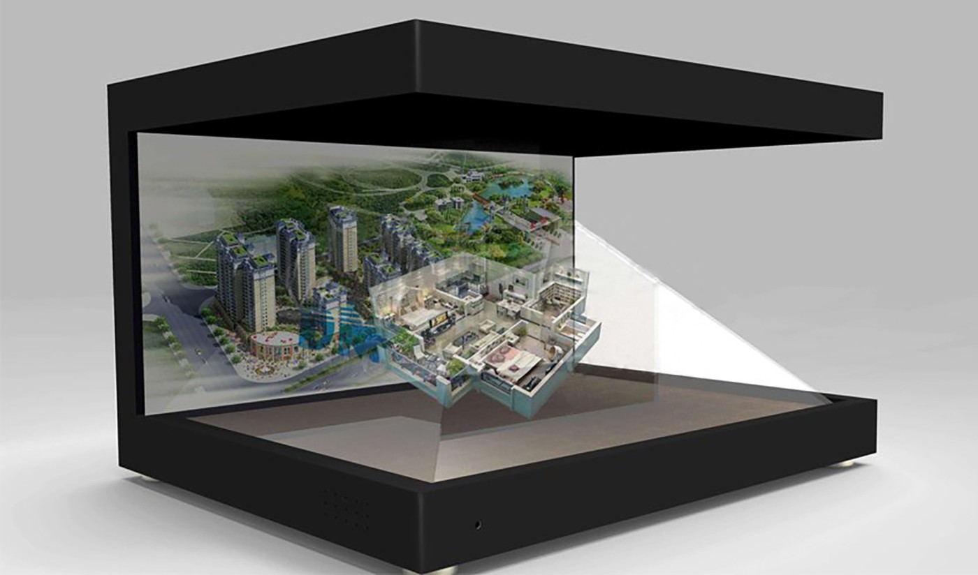 360°全息成像系統(tǒng)是由透明材料制成的四面錐體,參觀者的視線能從任何一面穿透它,通過表面鏡射和反射,參觀者能從錐形空間里看到自由飄浮的影像和圖形。四個(gè)視頻發(fā)射器將光信號(hào)發(fā)射到這個(gè)錐體中的特殊棱鏡上,匯集到一起后形成具有真實(shí)維度空間的立體影像;通過對(duì)產(chǎn)品實(shí)拍構(gòu)建三維模型的特殊處理,然后將拍攝的產(chǎn)品影像或產(chǎn)品三維模型影像疊加進(jìn)場(chǎng)景中,構(gòu)成了動(dòng)靜結(jié)合的產(chǎn)品展示系統(tǒng)。